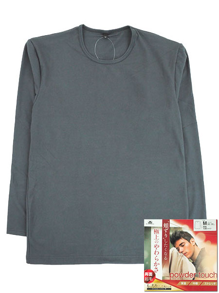 冬用メンズ肌着、頬ずりしたくなる極上のやわらかさ、両面起毛の長袖丸首シャツ。