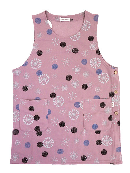 Hand Made 裏起毛ニット タバードエプロン かぶりタイプ 胞子の種プリント柄
