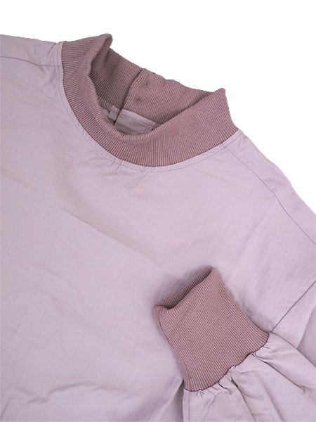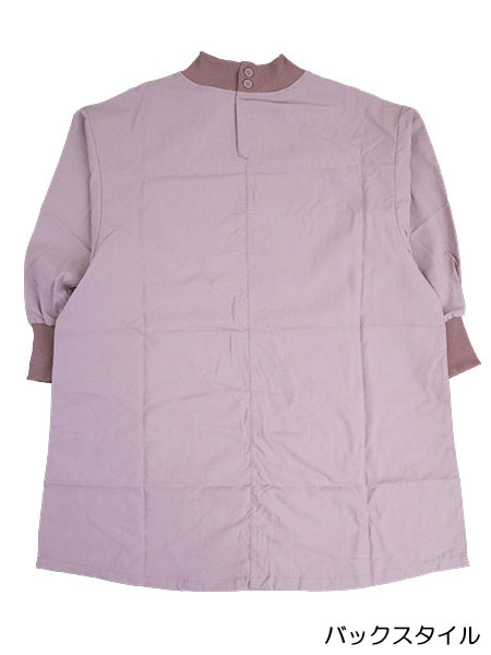 襟と袖口がリブで後ネックのリブ部分に2ボタン開きありのかぶりタイプ。