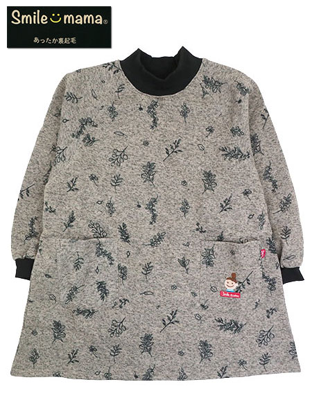Smile mama(スマイルママ) あったか杢ニット裏起毛 かぶり割烹着 草花柄