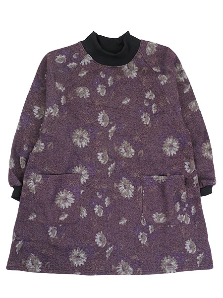 Aprirsi 杢ニット裏起毛 かぶり割烹着 花柄