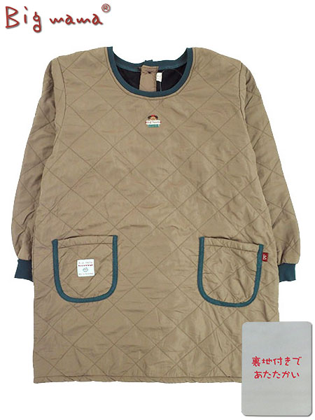 Big mama(ビッグママ) キルト裏フリース割烹着 無地 背ボタン