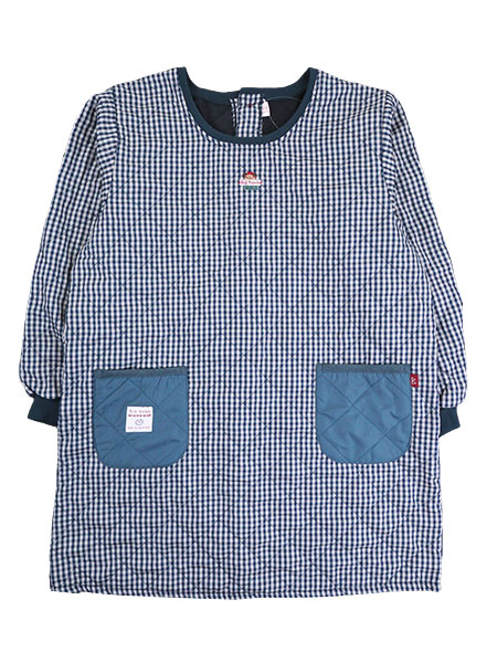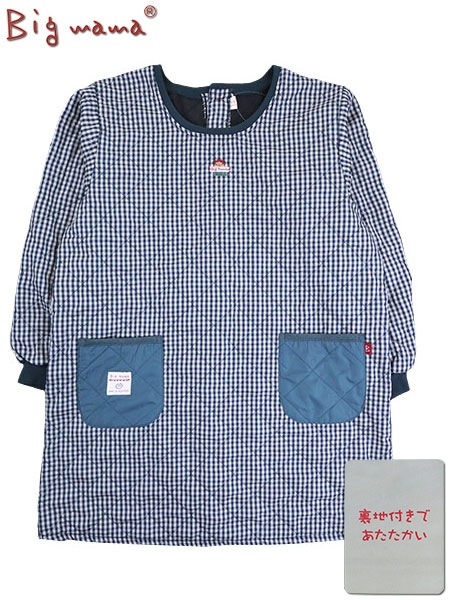 Big mama(ビッグママ) キルト裏フリース割烹着 チェック柄 背ボタン