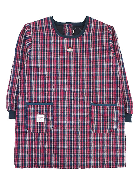 Big mama(ビッグママ) キルト裏フリース割烹着 チェック柄 背ボタン