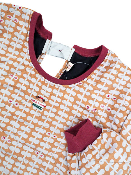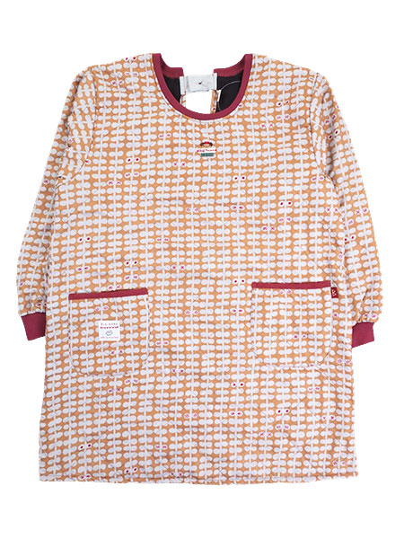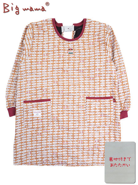 Big mama(ビッグママ) キルト割烹着 裏フリース  幾何学柄 後ろ開き