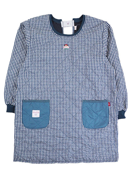 Big mama(ビッグママ) キルト割烹着 裏フリース ギンガムチェック柄 後ろ開き