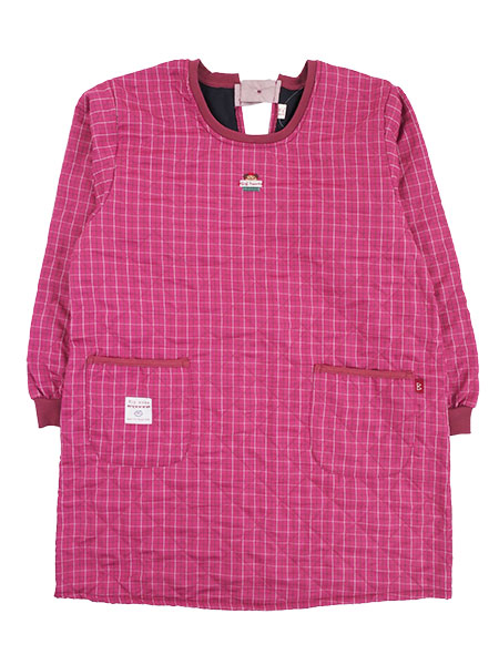 Big mama(ビッグママ) キルト割烹着 裏フリース チェック柄 後ろ開き