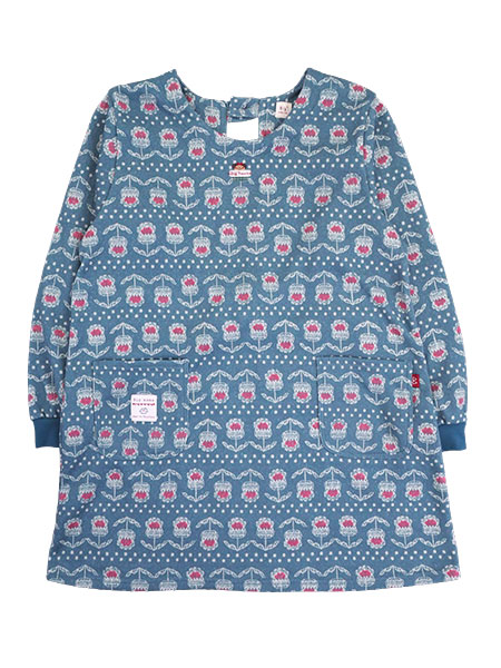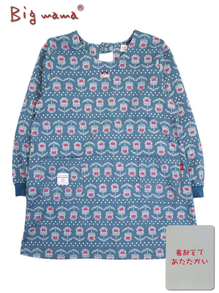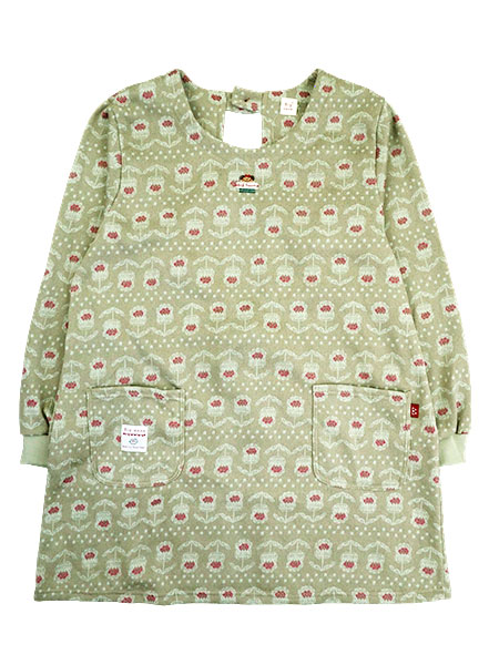 Big mama(ビッグママ)  裏起毛ニット割烹着 花柄 後ろ開き