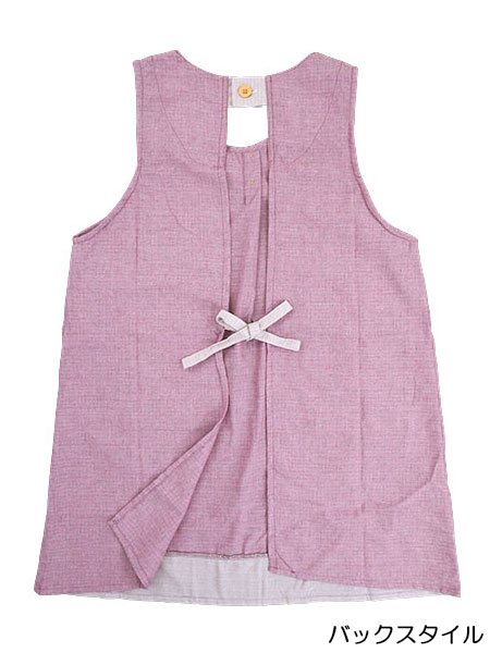 後ろは首元ワンボタン留め、ウエストひも調節となります。