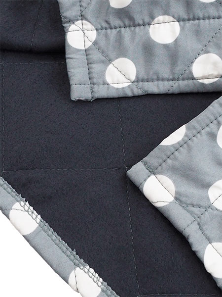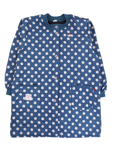 フリースの裏地付きであたたかい水玉柄のキッチンコート。