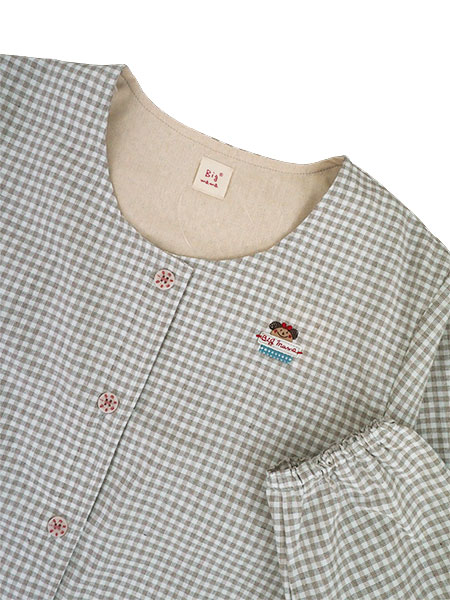 5個ボタンの前あきタイプで左胸部分にビッグママのかわいいワンポイント付き。