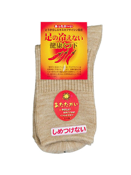 あったか~い、とうがらしエキスカプサイシン配合のレディースソックス。