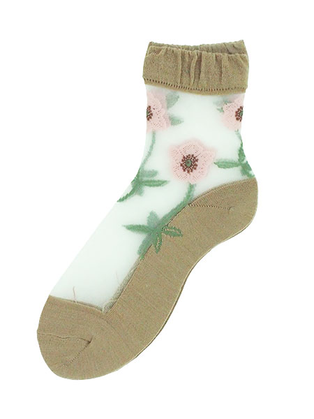 Telephone0.0 婦人カシミヤ混シースルーソックス つま先2重編み 花柄