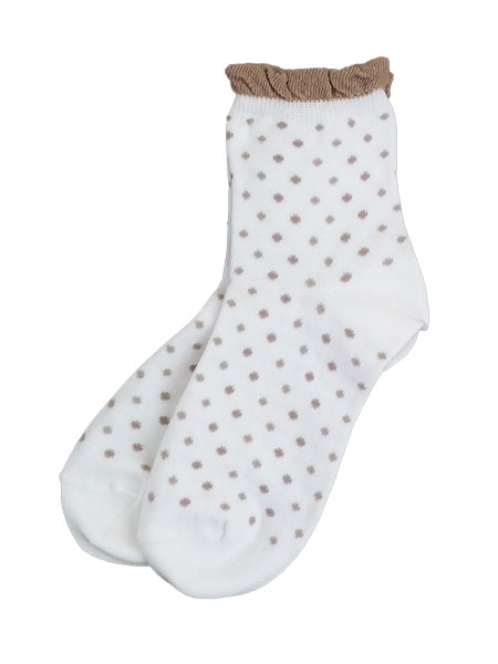 可愛らしいドット柄、さわやかな綿混の日本製靴下です。