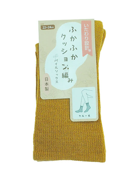 いたわり設計シリーズ、レディースのパイルソックス、クルー丈。