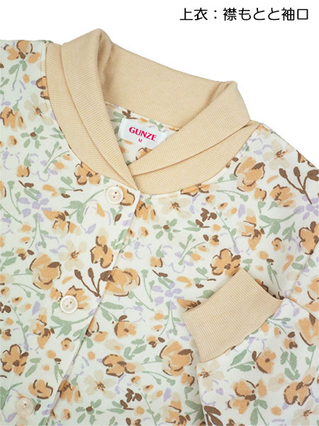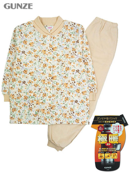 GUNZE(グンゼ)婦人長袖・長パンツパジャマ 極暖 まるで魔法瓶 裏起毛 花柄