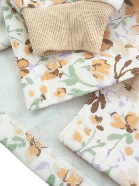 パンツ:裾リブ、ポケットなし、ウエストゴム取り替え口付き。