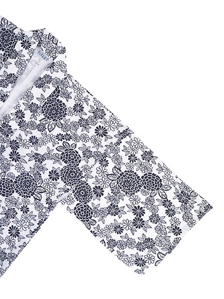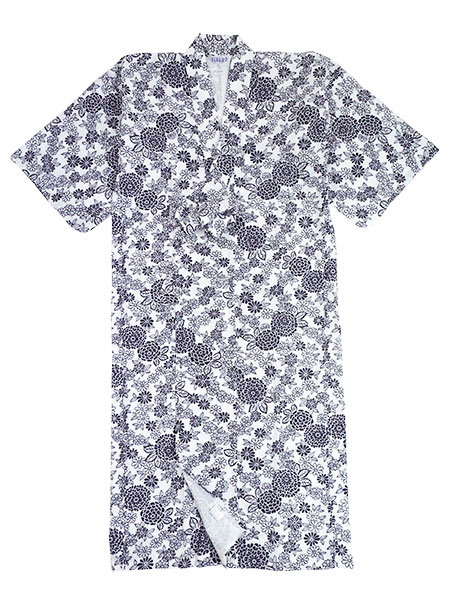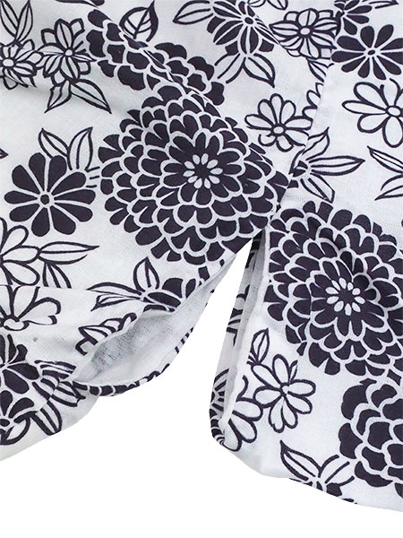 年間を通し快適に着られて肌にやさしい、裏ガーゼ仕様。同じ柄の腰紐付き。