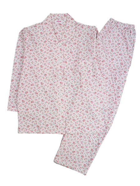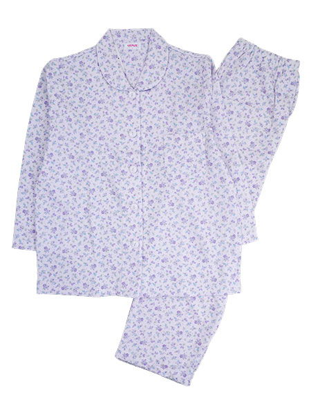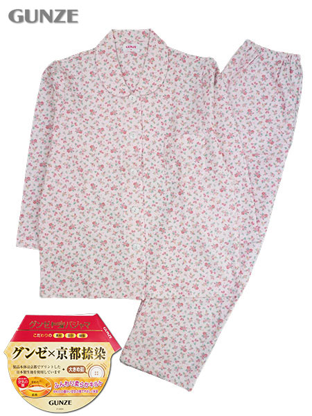 グンゼ 婦人長袖・長パンツパジャマ 大きめ釦 京都捺染 ソフトキルト 花柄 襟付き