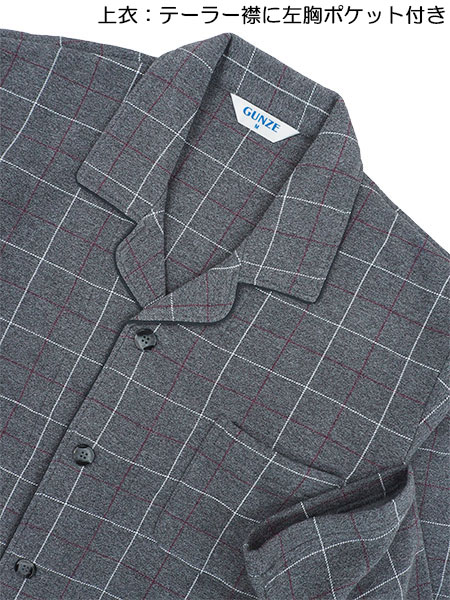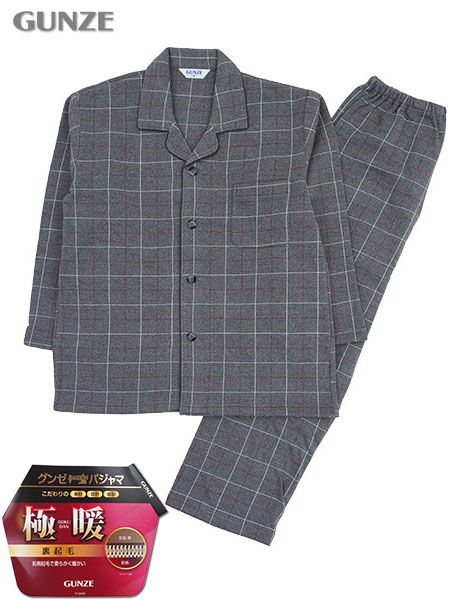 GUNZE(グンゼ)紳士長袖・長パンツパジャマ 極暖 裏起毛 チェック柄