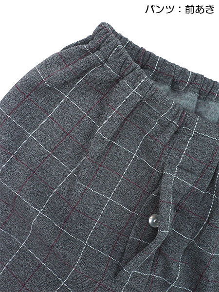 パンツ:前あき、ポケットなし、ウエストゴム取り替え口付き。