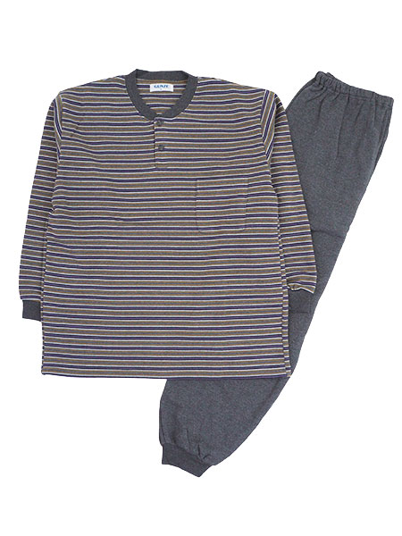 GUNZE(グンゼ)紳士長袖・長パンツパジャマ 極暖 裏起毛 ボーダー柄 かぶりタイプ