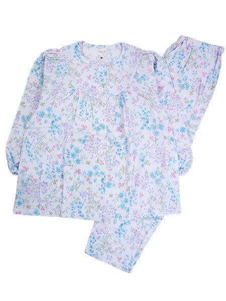 グンゼ 快適工房 婦人長袖・長パンツパジャマ 着替えがらくらく 綿100%Wガーゼ 花柄