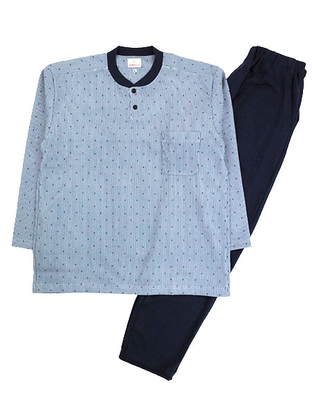 GUNZE(グンゼ)WARMPLUSのメンズ長袖パジャマ、肩・もも保温。