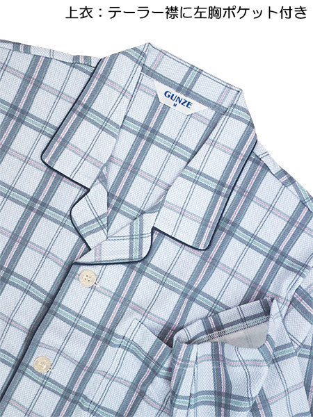 こだわりの素材・縫製・設計のグンゼこだわりパジャマ。チェック柄プリント。
