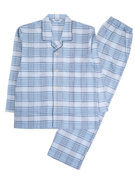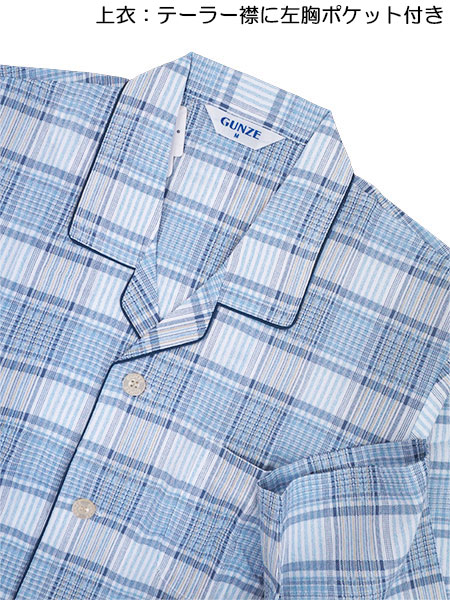 グンゼ 紳士長袖・長パンツパジャマ 日本製 高島ちぢみ 綿100% チェック柄