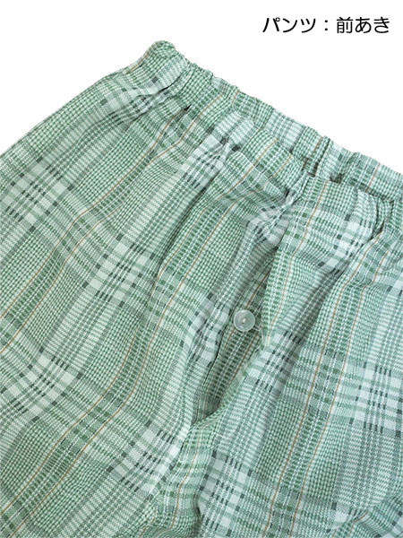 パンツ:前あき、ポケットなし、ウエストゴム取り替え口付き。