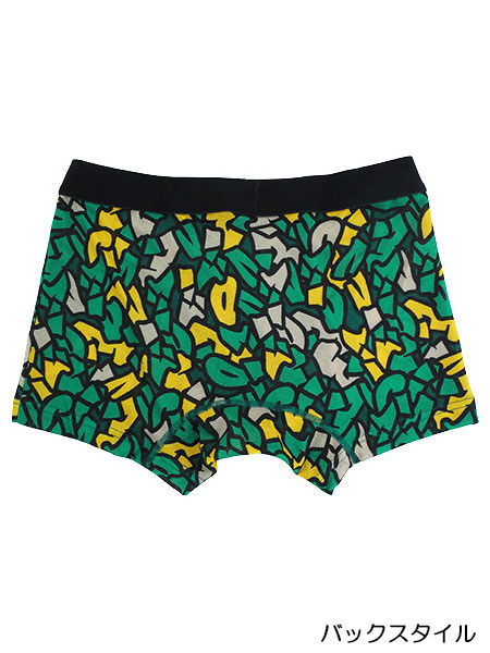 グンゼ、ボディワイルドのメンズボクサーブリーフ、前とじタイプ、ジオメトリックグラフィティ柄。