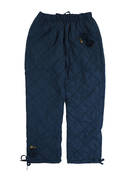 花のモチーフが可愛らしい、ふんわり暖かいキルトのパンツです。