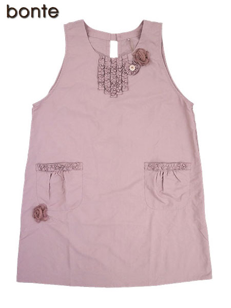 bonte ナイロン花モチーフ ラン型エプロン 胸元フリル ウエスト紐タイプ