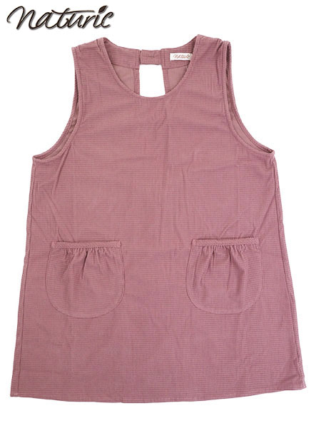 naturic ラン型エプロン コーデュロイ 腰ゴム かぶりエプロン