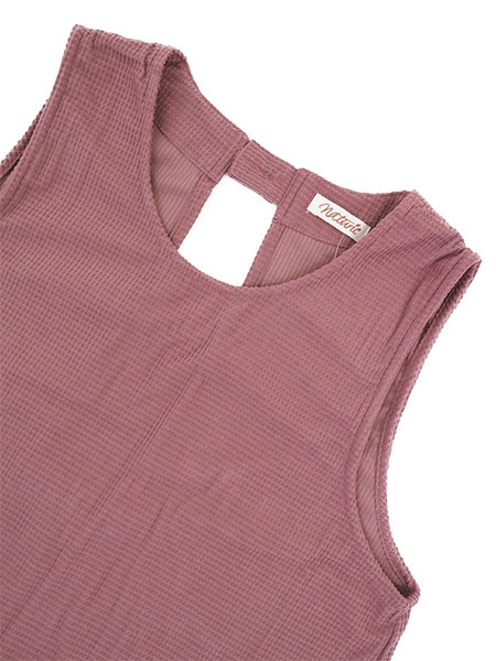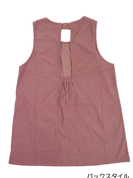 後ろはネック部分ワンボタンでウエストまで半開、ウエストセンターにゴム入りです。