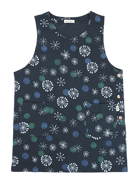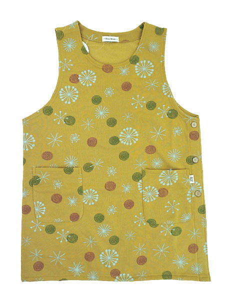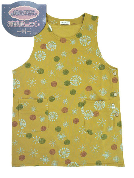 Hand Made 裏起毛ニット タバードエプロン かぶりタイプ 胞子の種プリント柄