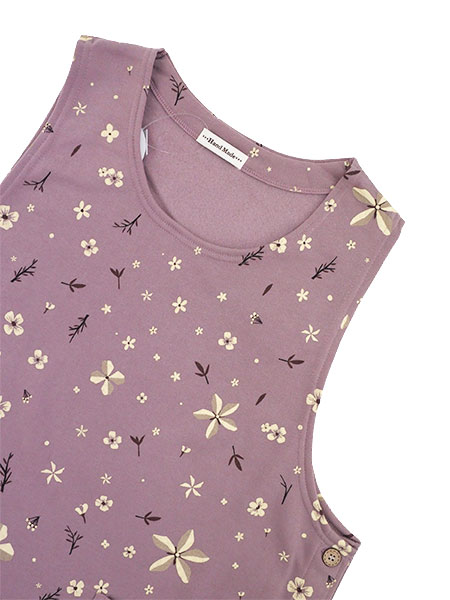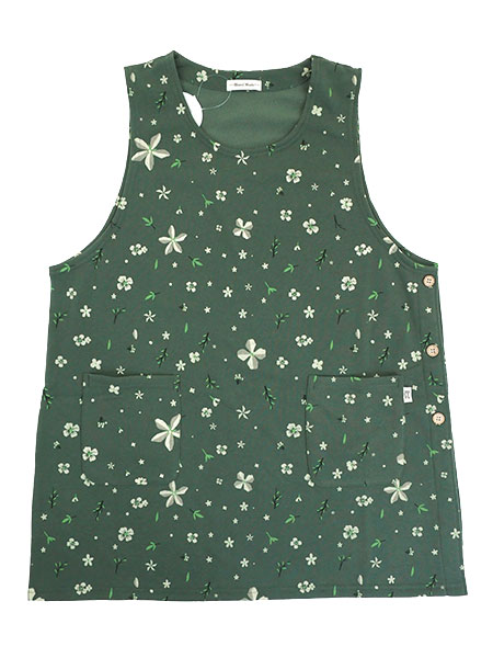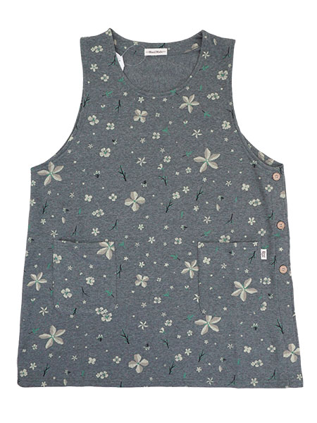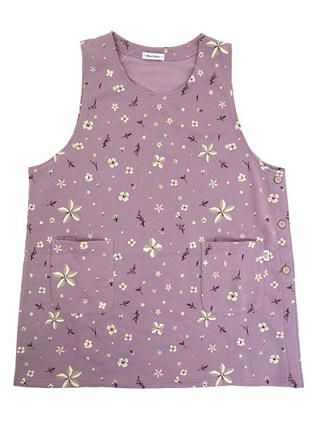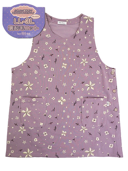 Hand Made 裏起毛ニット タバードエプロン ゆったりLL-3Lサイズ かぶりタイプ 花柄