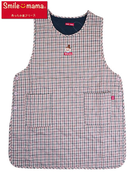 Smile mama(スマイルママ) キルト裏フリース ラン型かぶりエプロン チェック ロングタバー