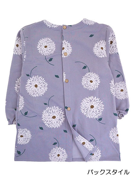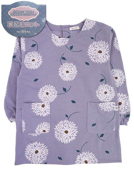 Hand Made 裏起毛ニット割烹着 背ボタン 花プリント柄