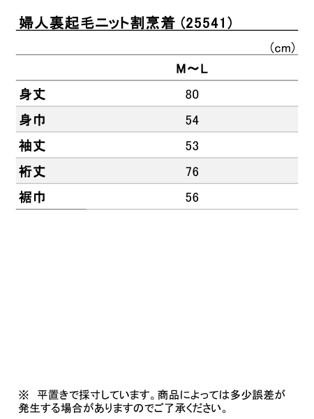 商品サイズ表