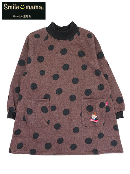 Smile mama(スマイルママ) あったか杢ニット裏起毛 かぶり割烹着 水玉柄