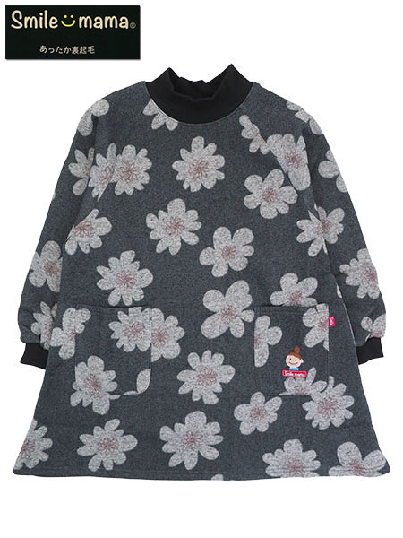 Smile mama(スマイルママ) あったか杢ニット裏起毛 かぶり割烹着 花柄