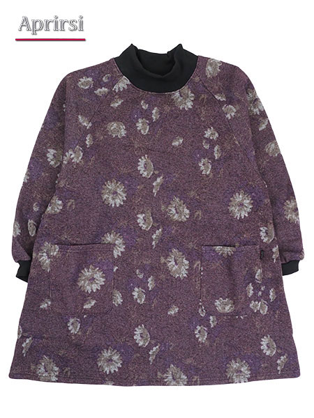 Aprirsi 杢ニット裏起毛 かぶり割烹着 花柄