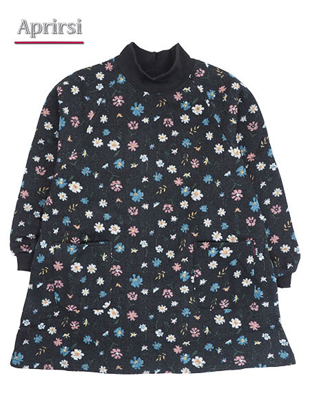 Aprirsi 杢ニット裏起毛 かぶり割烹着 花柄