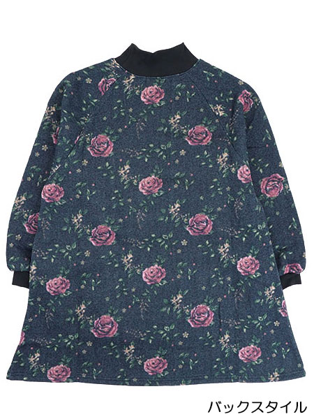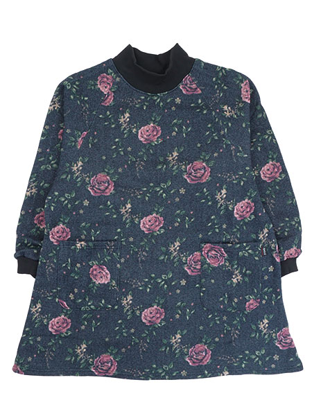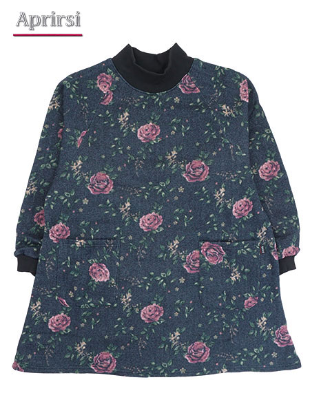 Aprirsi 杢ニット裏起毛 かぶり割烹着 バラ柄