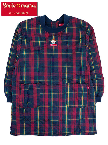 Smile mama(スマイルママ) 裏フリース割烹着 キルト チェック柄 背ボタン