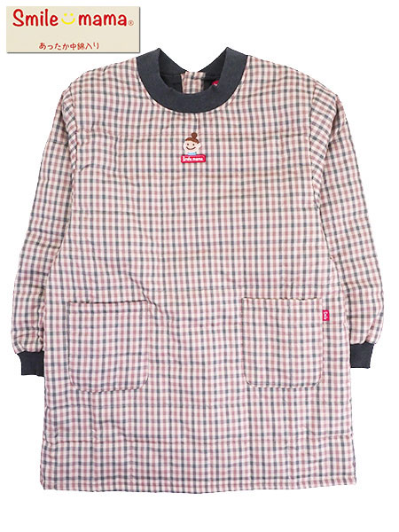 Smile mama(スマイルママ) 中わた入りキルト割烹着 小さめチェック柄 背ボタン