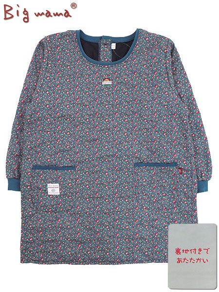 Big mama(ビッグママ) キルト裏フリース割烹着 花柄 背ボタン