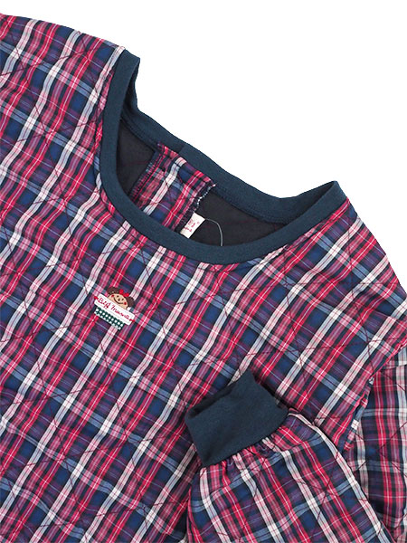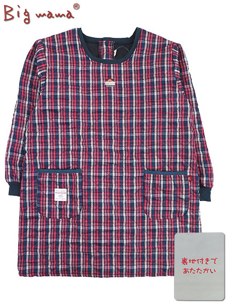 Big mama(ビッグママ) キルト裏フリース割烹着 チェック柄 背ボタン